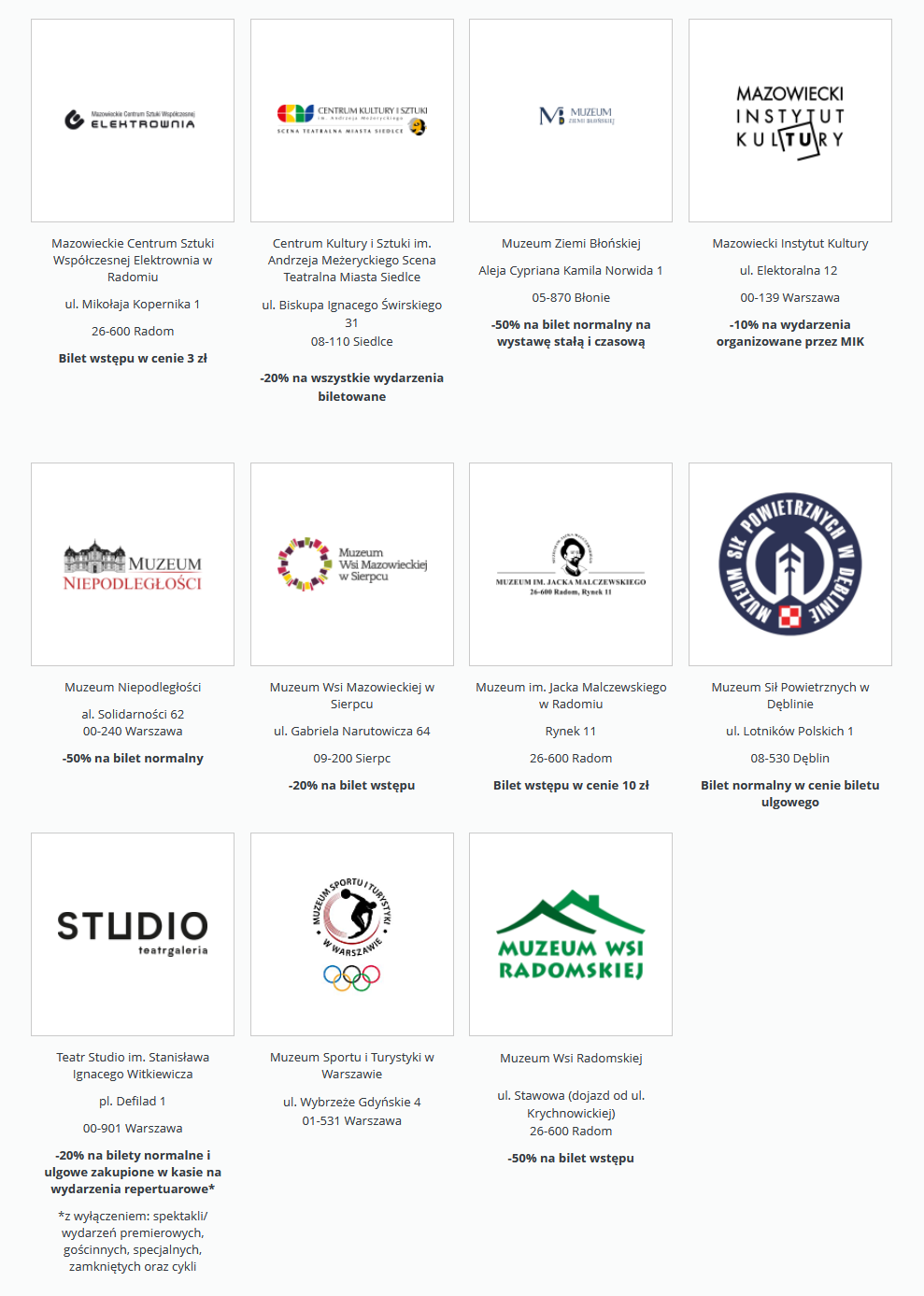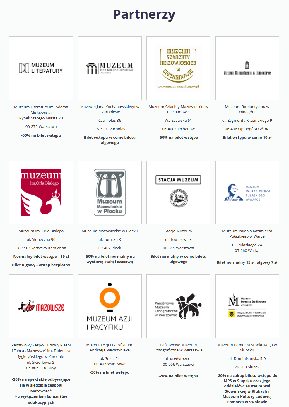 Lista partnerów akcji oraz szczegóły dostępne są na stronie: https://dokultury.mazowieckie.com.pl/pl