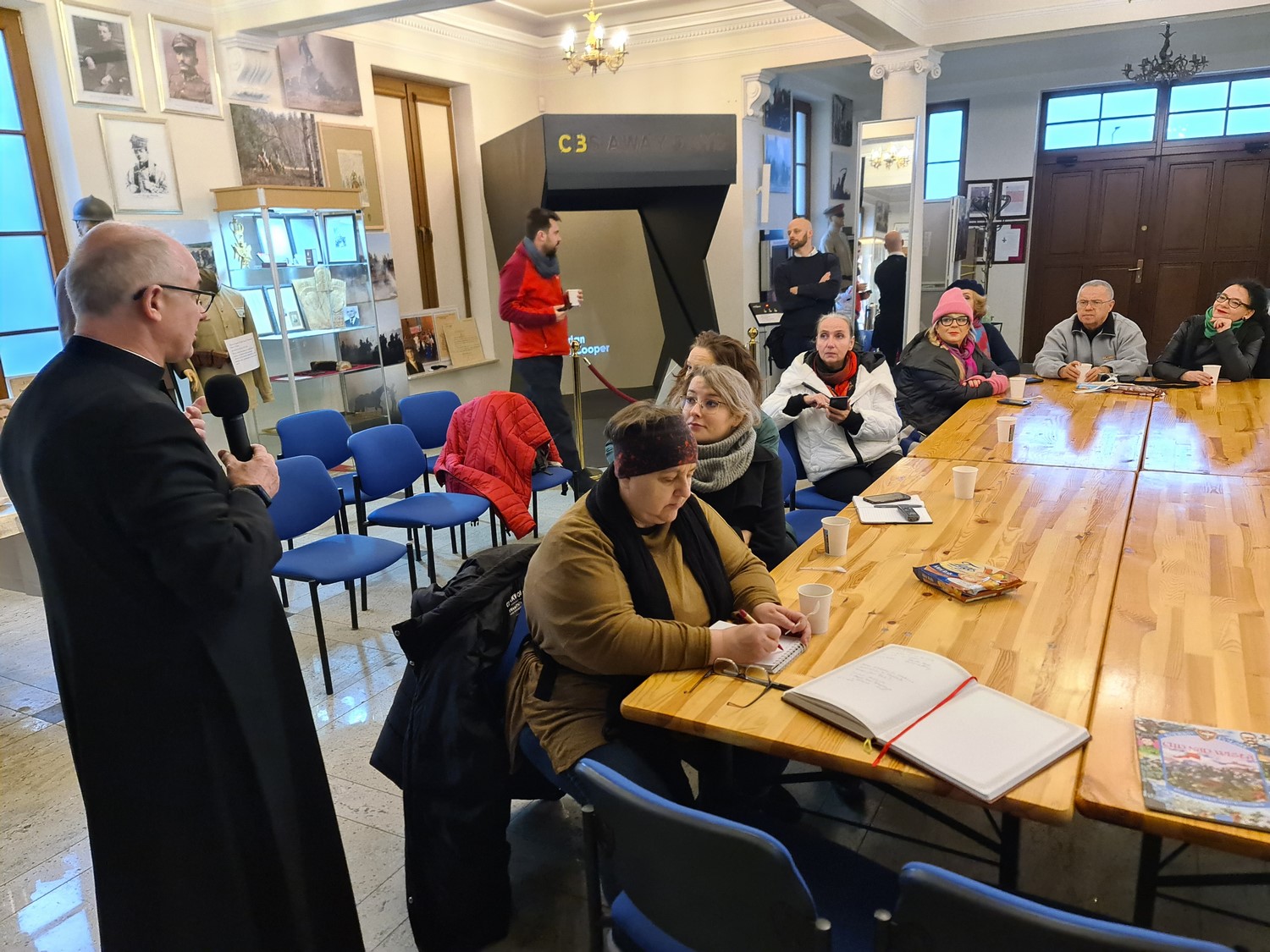 Na początku trasy, w Radzyminie gościł nas Proboszcz Parafii św. Jana Pawła II – ks. Krzysztof Ziółkowski prezentując fantastycznie zrealizowaną inicjatywę przywrócenia w ludzkiej pamięci tego miejsca jako jednego z pól bitewnych Bitwy Warszawskiej 1920 r. Tutejsza izba pamięci przy kościele prezentuje unikatowy zbiór ciekawych eksponatów wraz z wyjątkowym filmem prezentującym wspomnienia amerykańskich lotników biorących udział w wojnie 1920 r. Polecamy oprowadzanie i opowieści Ks. Proboszcza – ksiądz jest istną skarbnicą wiedzy o okresie bitwy i kolejnych 100 latach, kiedy różnie było z prawdą o niej. Nostalgią napawa zaś cmentarz parafialny na którym spoczywają bohaterowie polegli pod Radzyminem w roku 1920 i 1939.