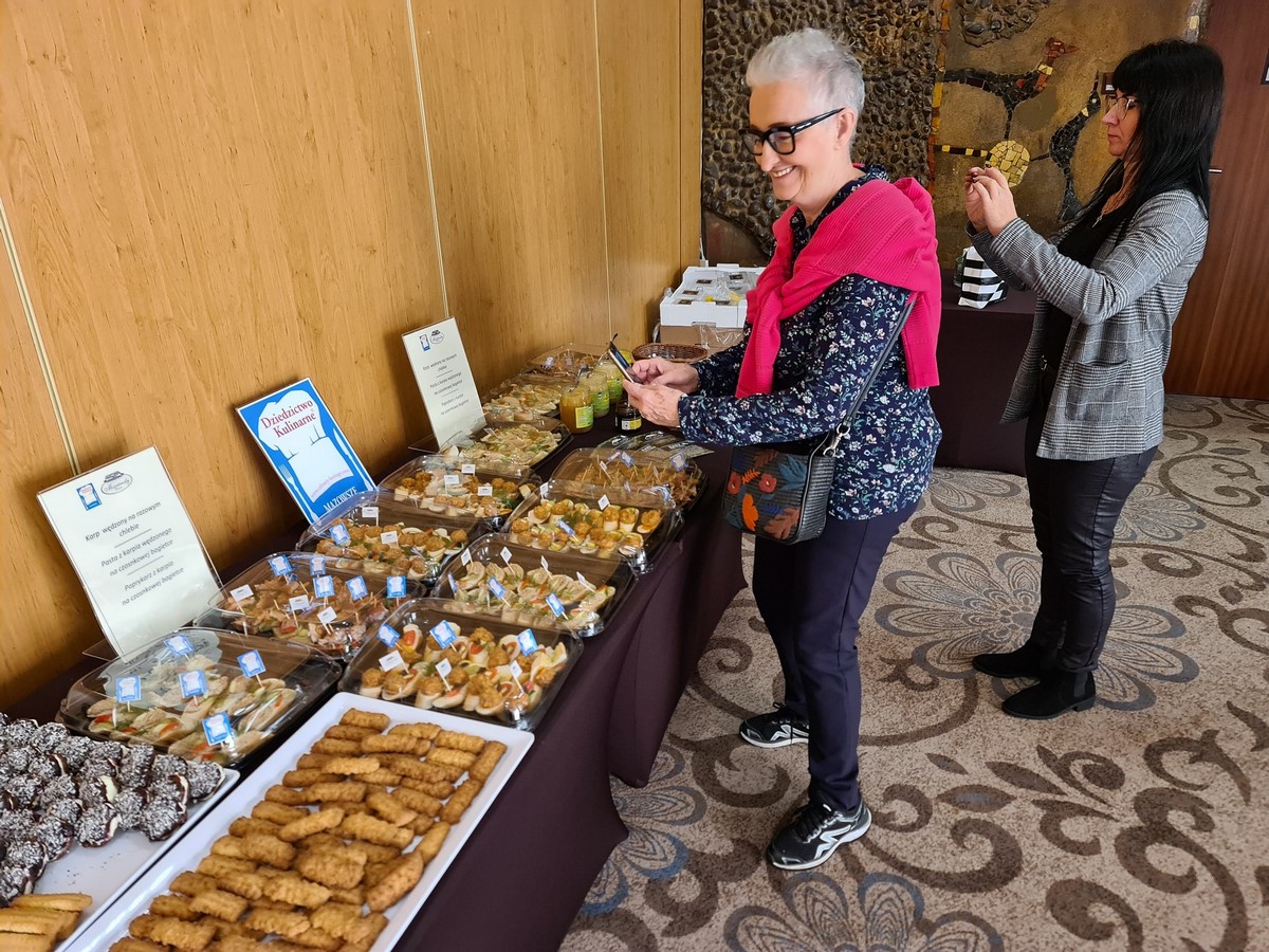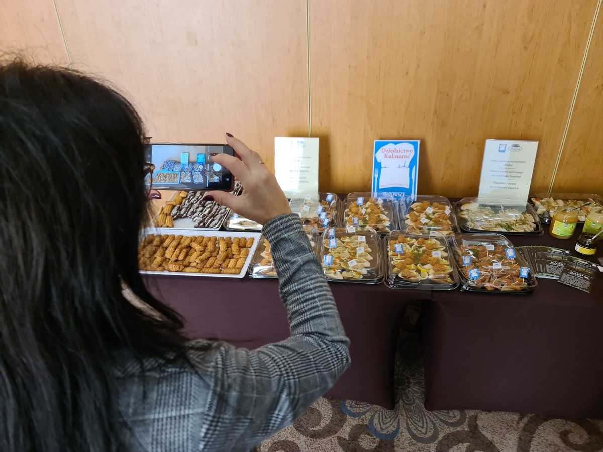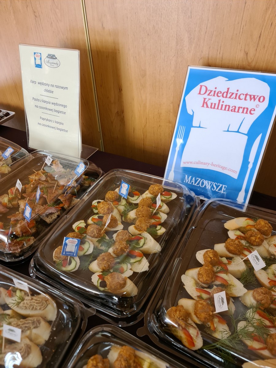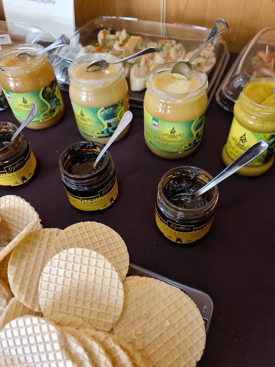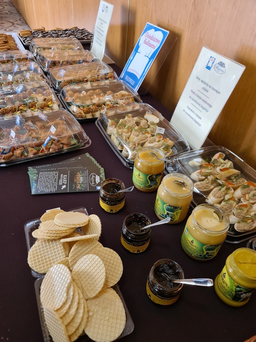 Uczestnicy konferencji mogli zdegustować takie specjały jak: karp wędzony na razowym chlebie, pasta z karpia wędzonego na razowej bagietce, paprykarz z karpia na czosnkowej bagietce, powidła olenderskie, miód nektarowy lipowy, miód nektarowy sosnowy, miód nektarowy słonecznikowy, miód z pyłkiem i propolisem, pierniczki staropolskie oraz kruche ciasteczka.